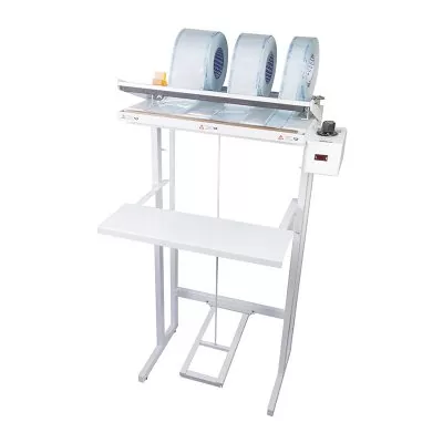 Seladora com acionamento através de pedal e controle de temperatura analógico por termostato.